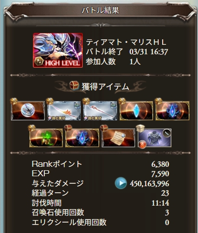ティアマト・マリスHL実装時は苦戦していましたが、今ではフルオートで撃破可能になりました。