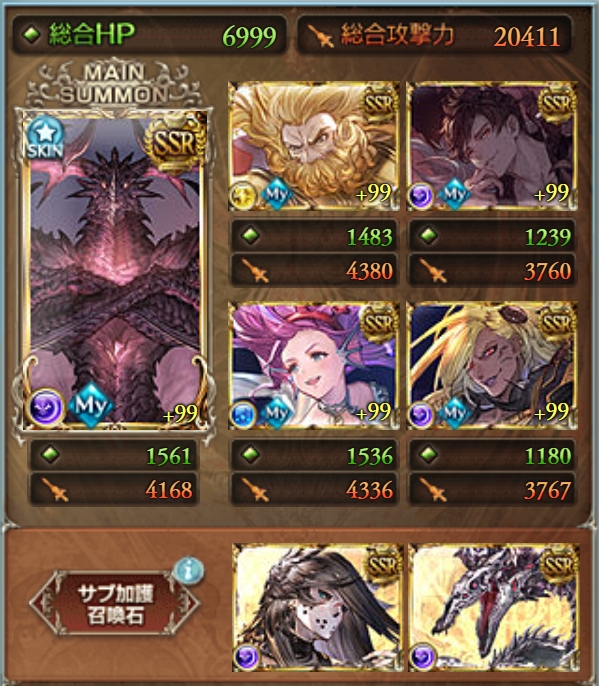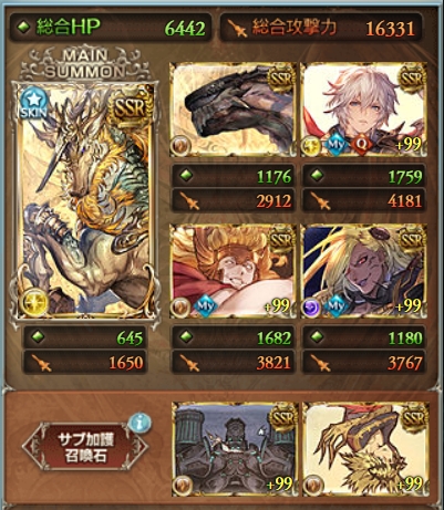 騎空団サポート、黄龍、水着イルノートで戦闘開始時から全員奥義を発動させる編成となっています。