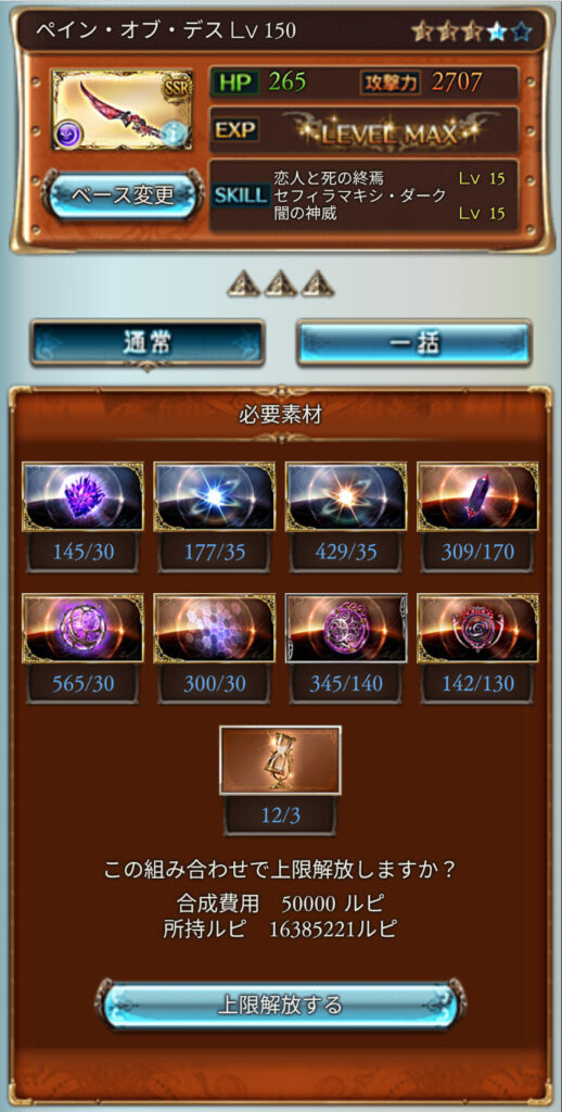 主に特定の武器・召喚石の強化や限界超越、オリジンクラスジョブの上限解放、