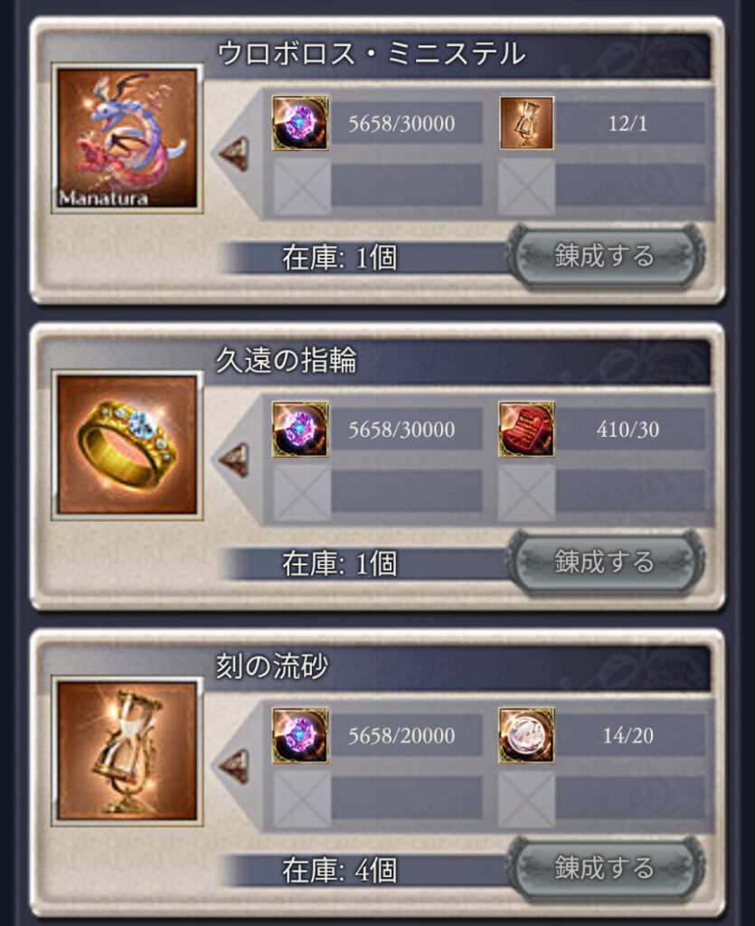 ミニステルの入手と大量の刻の流砂が必要になり、
