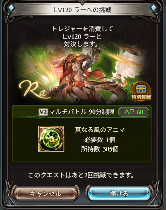ラーの予兆は奥義ダメージ、奥義4回、2000万ダメージなどで解除できます。