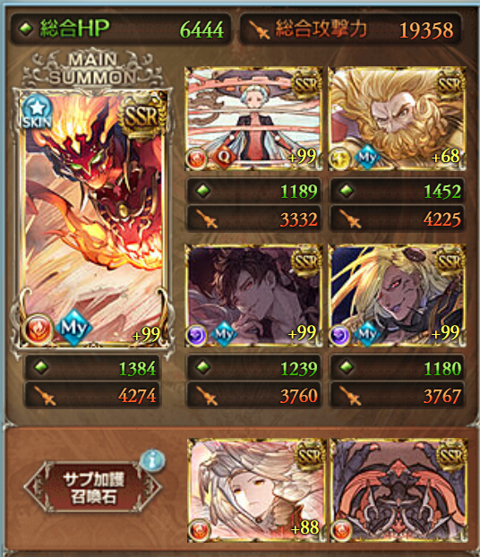 メイン召喚石は限界超越「アグニス」Lv210。クイック召喚に5凸「ザ・サン」を設定。