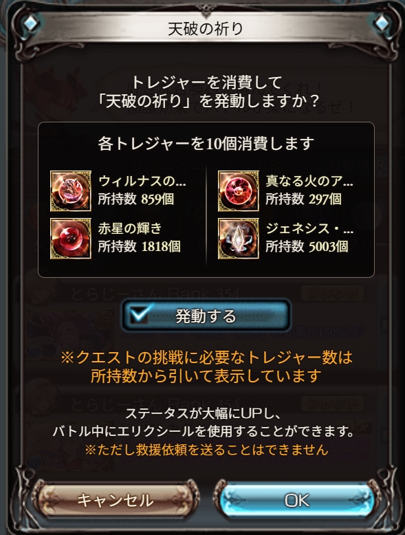 サポーター召喚石を選択後、「天破の祈り」を発動させるか選択があります。