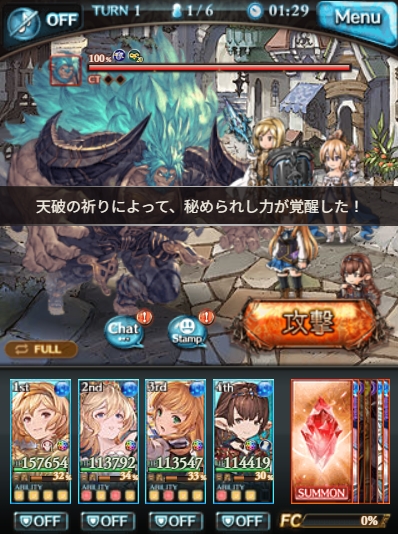 発動させていればハーゼリーラ登場後「天破の祈りによって、秘められし力が覚醒した!」というコメントが出ます。